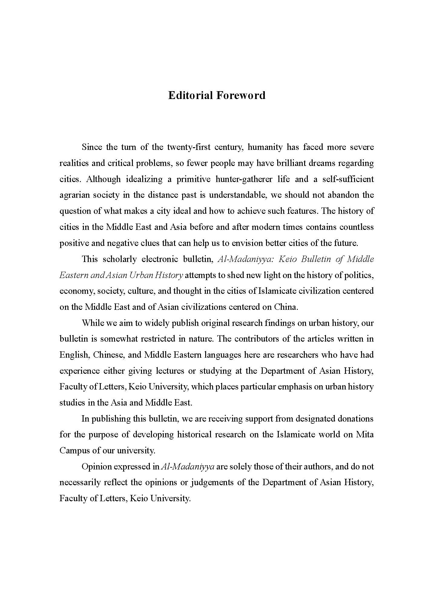 Al-Madaniyya : Keio bulletin of Middle Eastern and Asian urban history