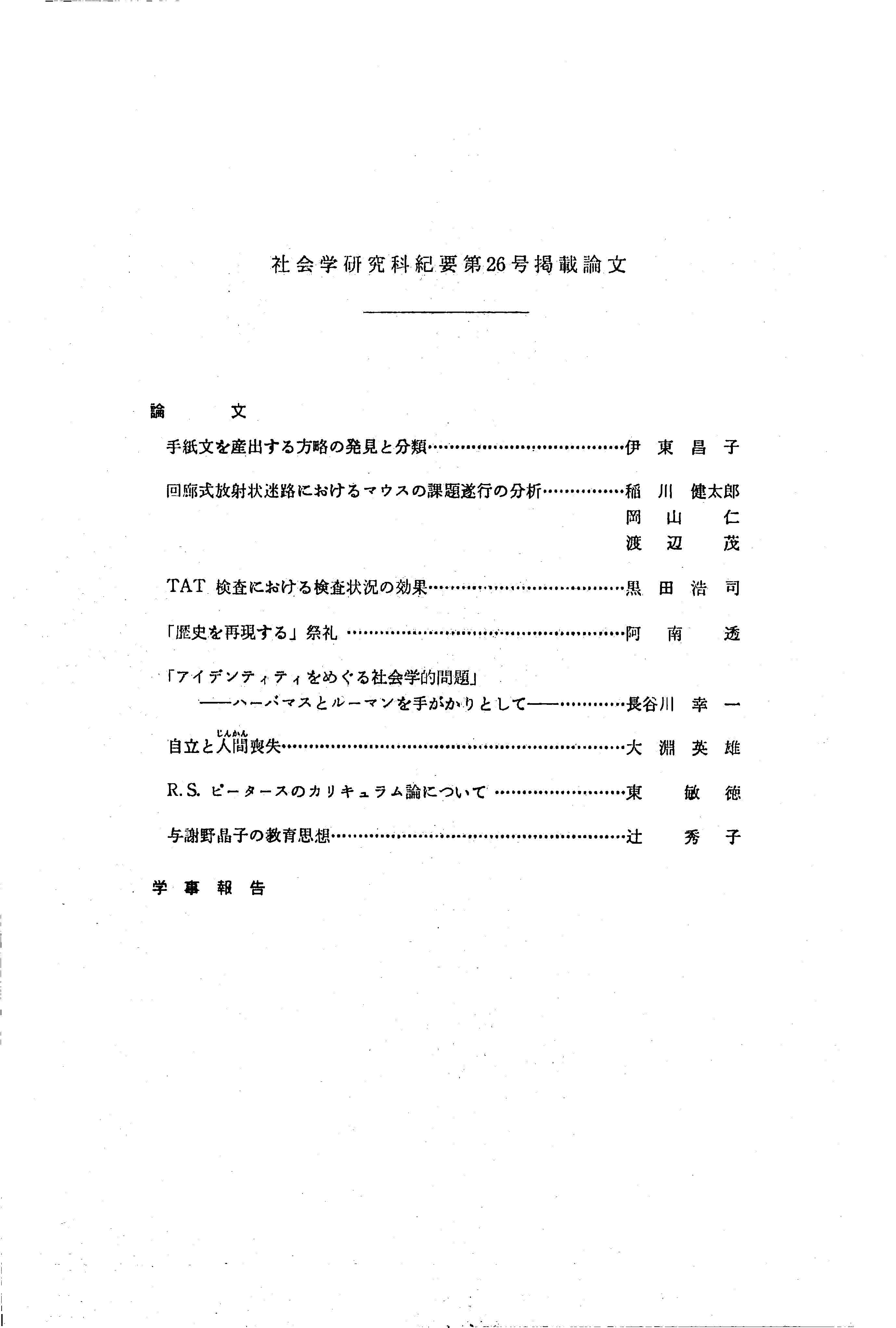 シャカイガク ケンキュウカ キヨウ ダイ26ゴウ ケイサイ ロンブン