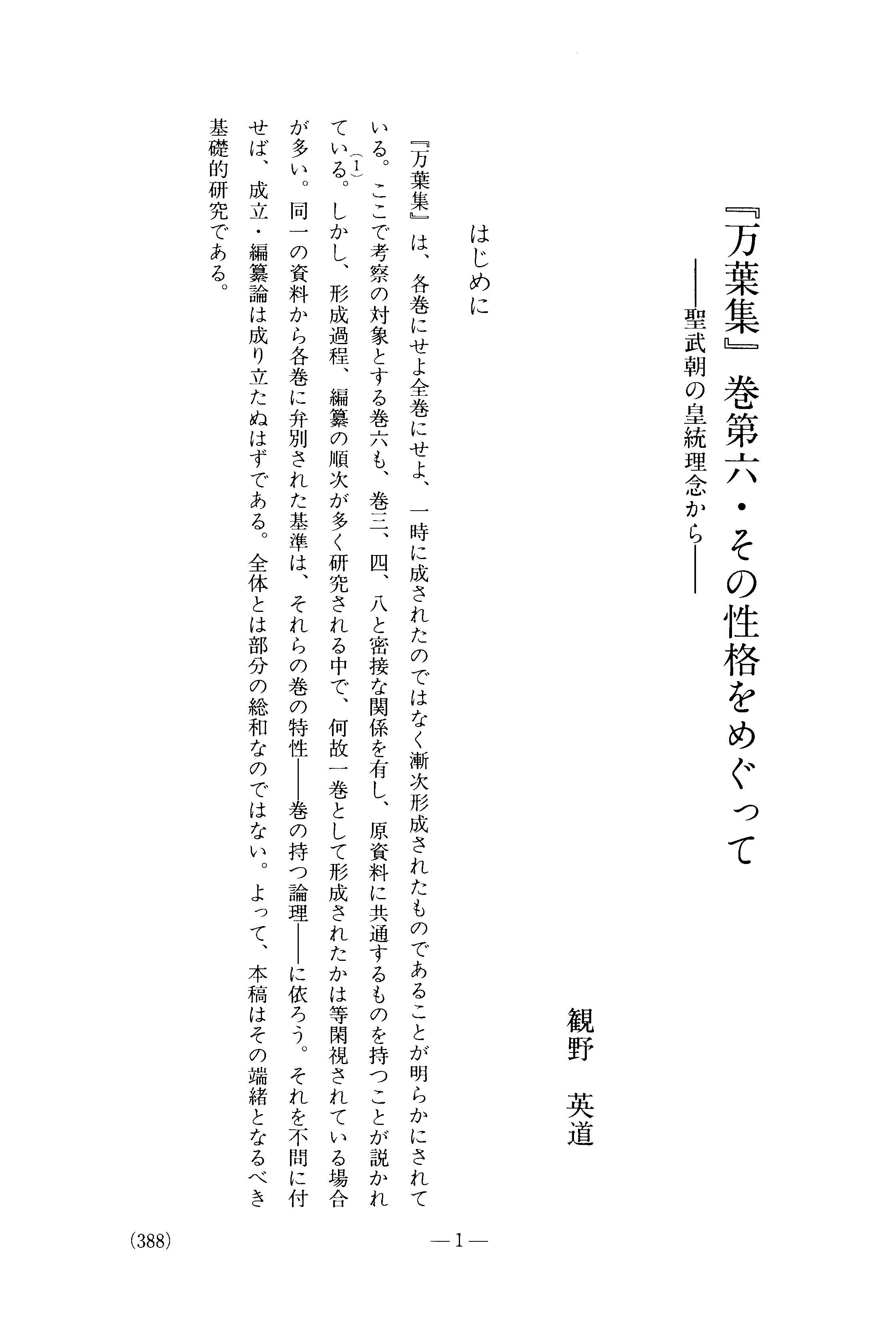 『万葉集』巻第六・その性格をめぐって : 聖武朝の皇統理念から