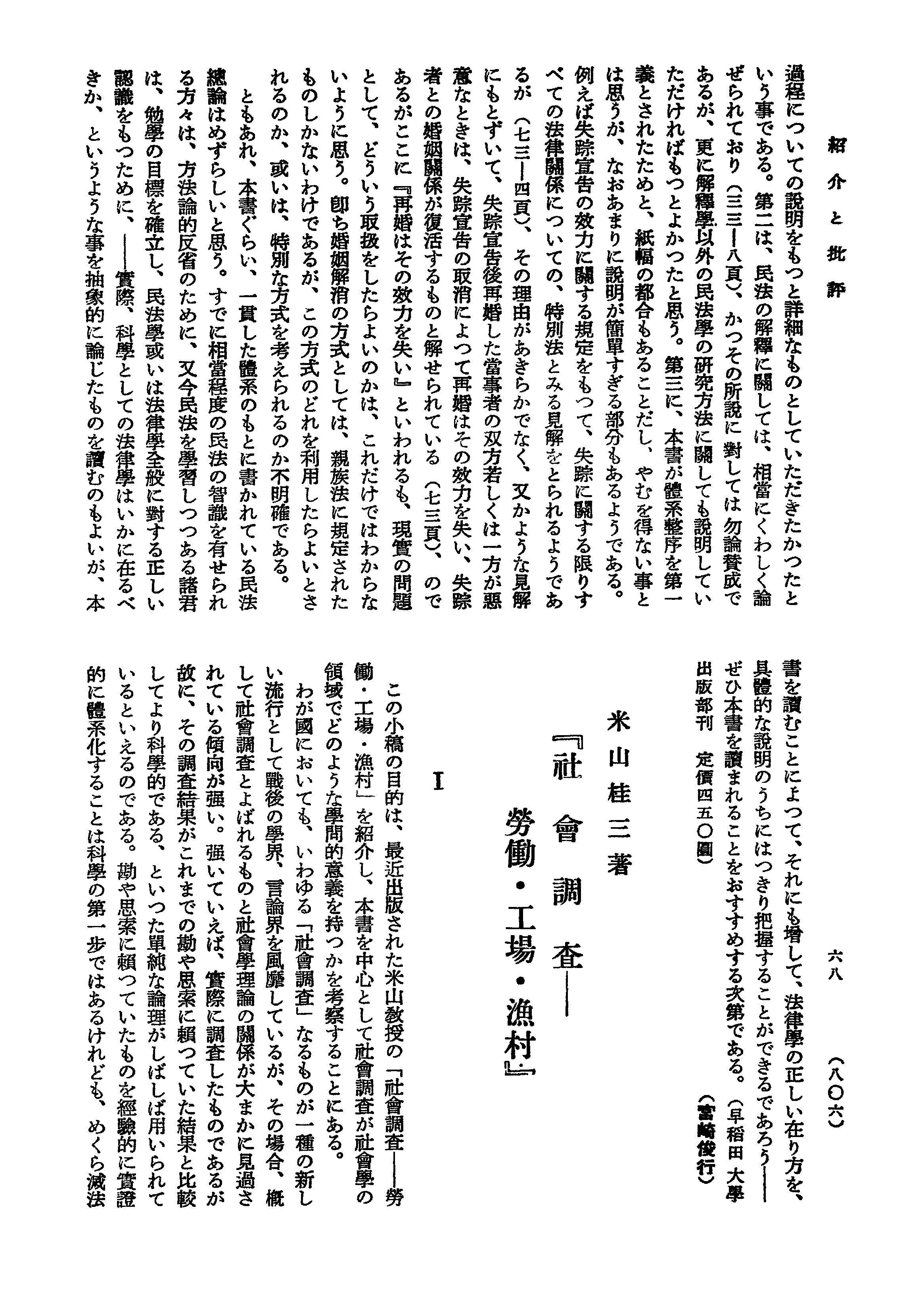 米山桂三著『社會調査 : 勞働・工場・漁村』