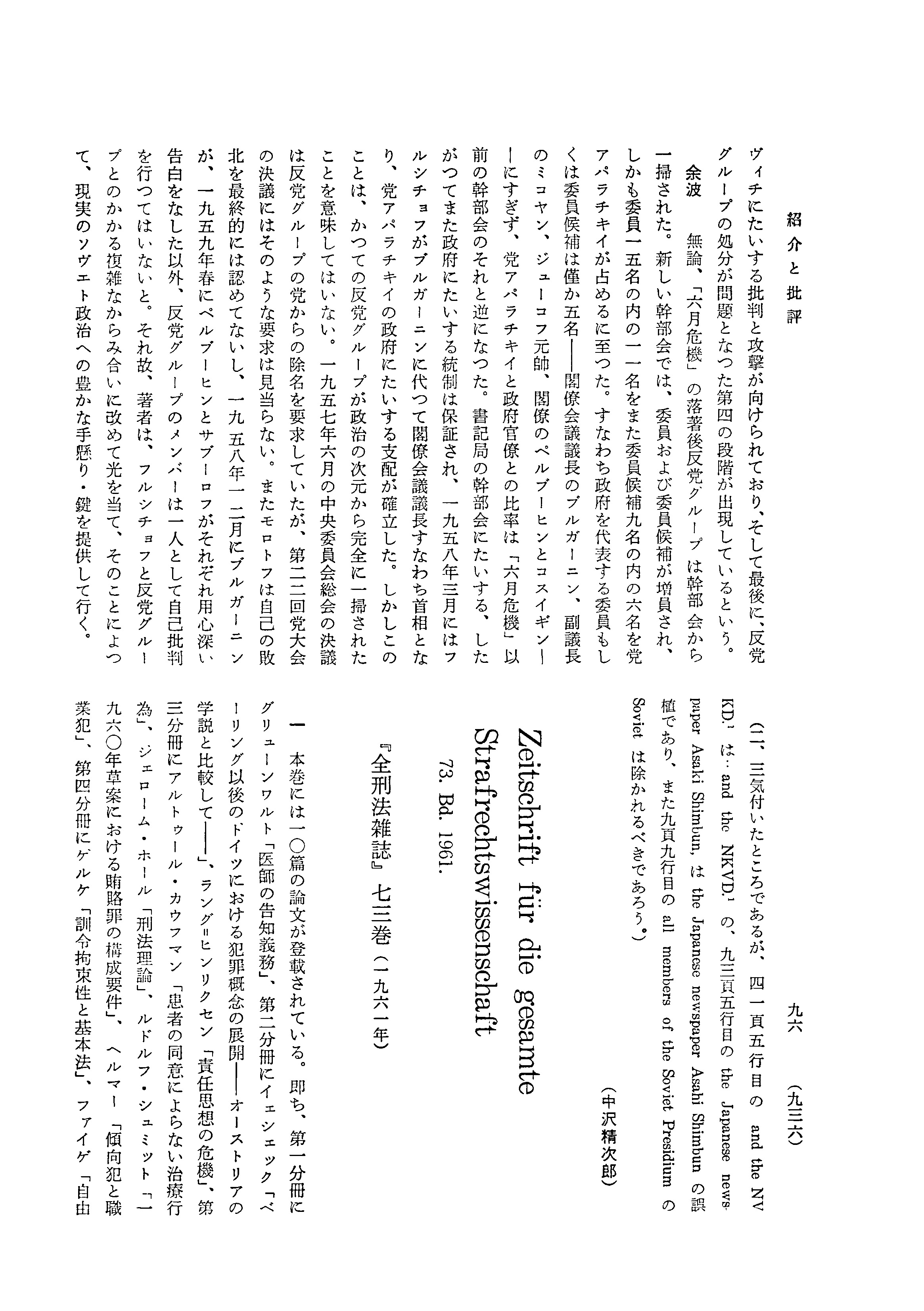 『全刑法雑誌』七三巻 (一九六一年)