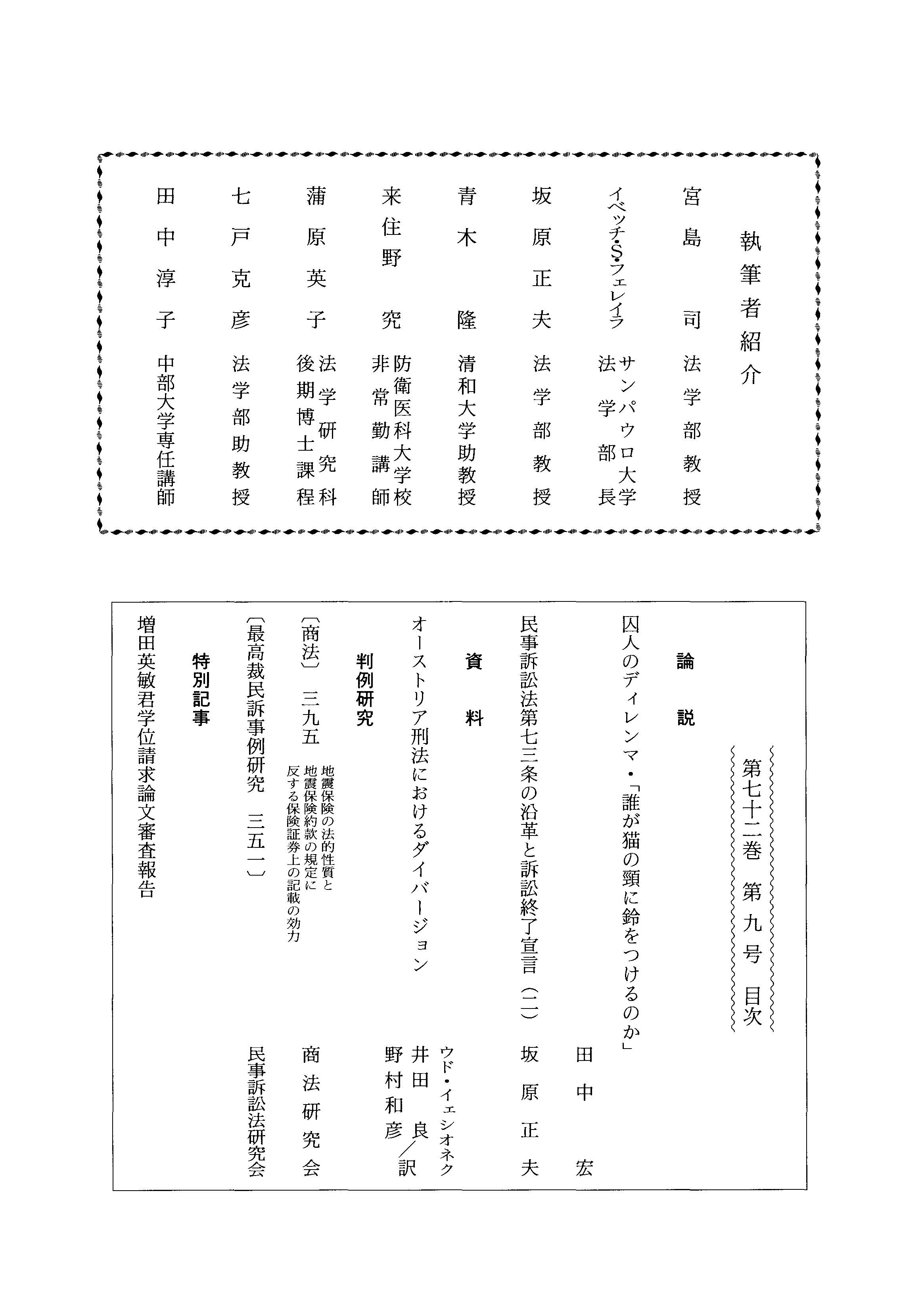 執筆者紹介 ; 第七十二巻第九号目次