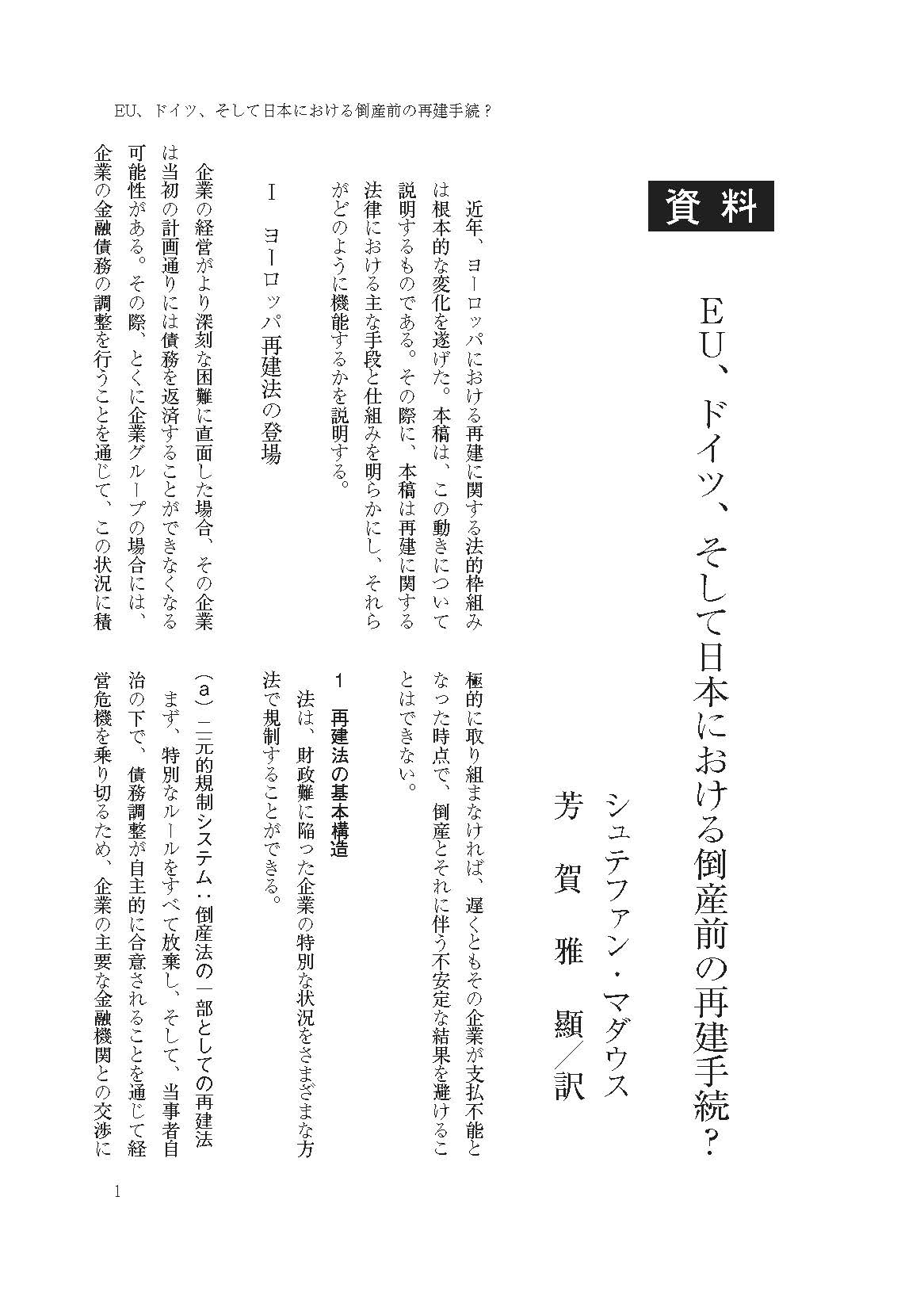 EU、ドイツ、そして日本における倒産前の再建手続?