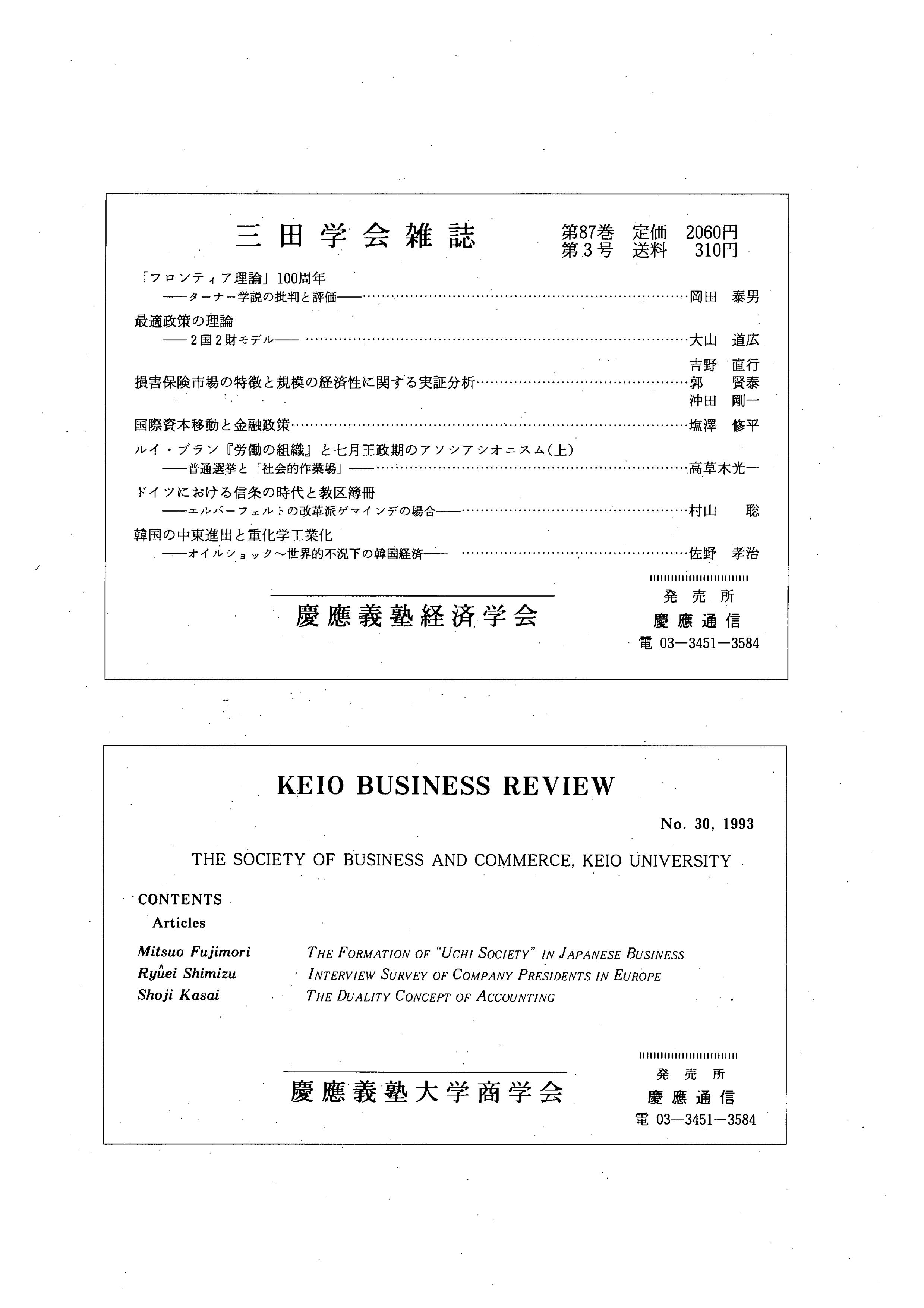 三田学会雑誌第87巻第3号目次