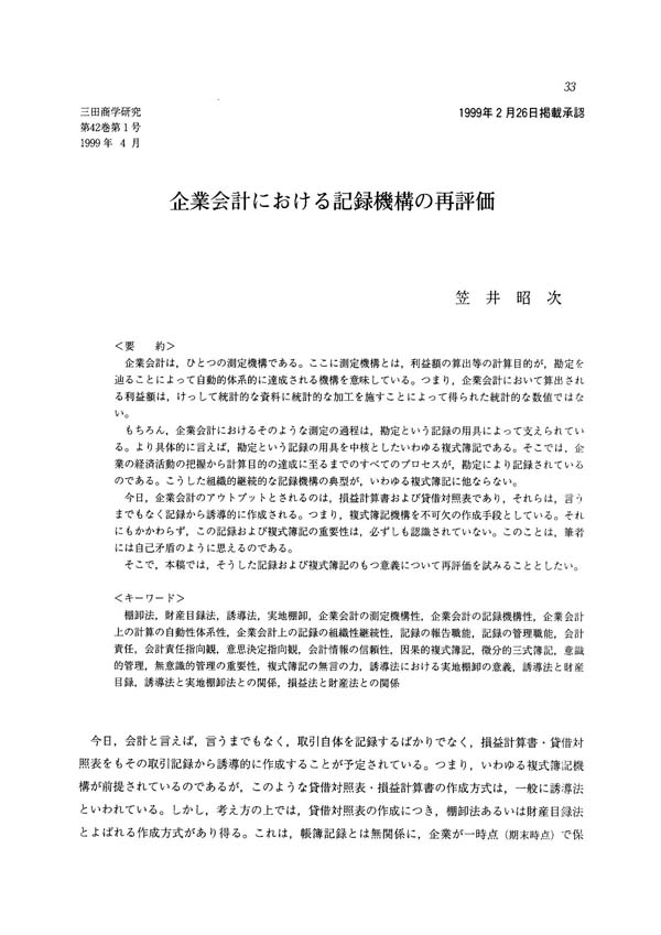 キギョウ カイケイ ニオケル キロク キコウ ノ サイヒョウカ