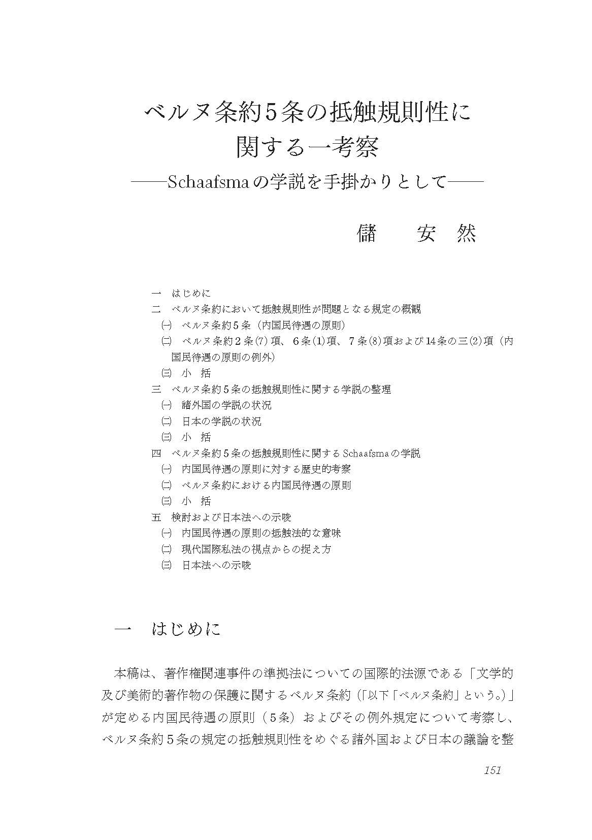 ベルヌ ジョウヤク 5ジョウ ノ テイショク キソクセイ ニ カンスル イチ コウサツ : Schaafsma ノ ガクセツ オ テガカリ トシテ