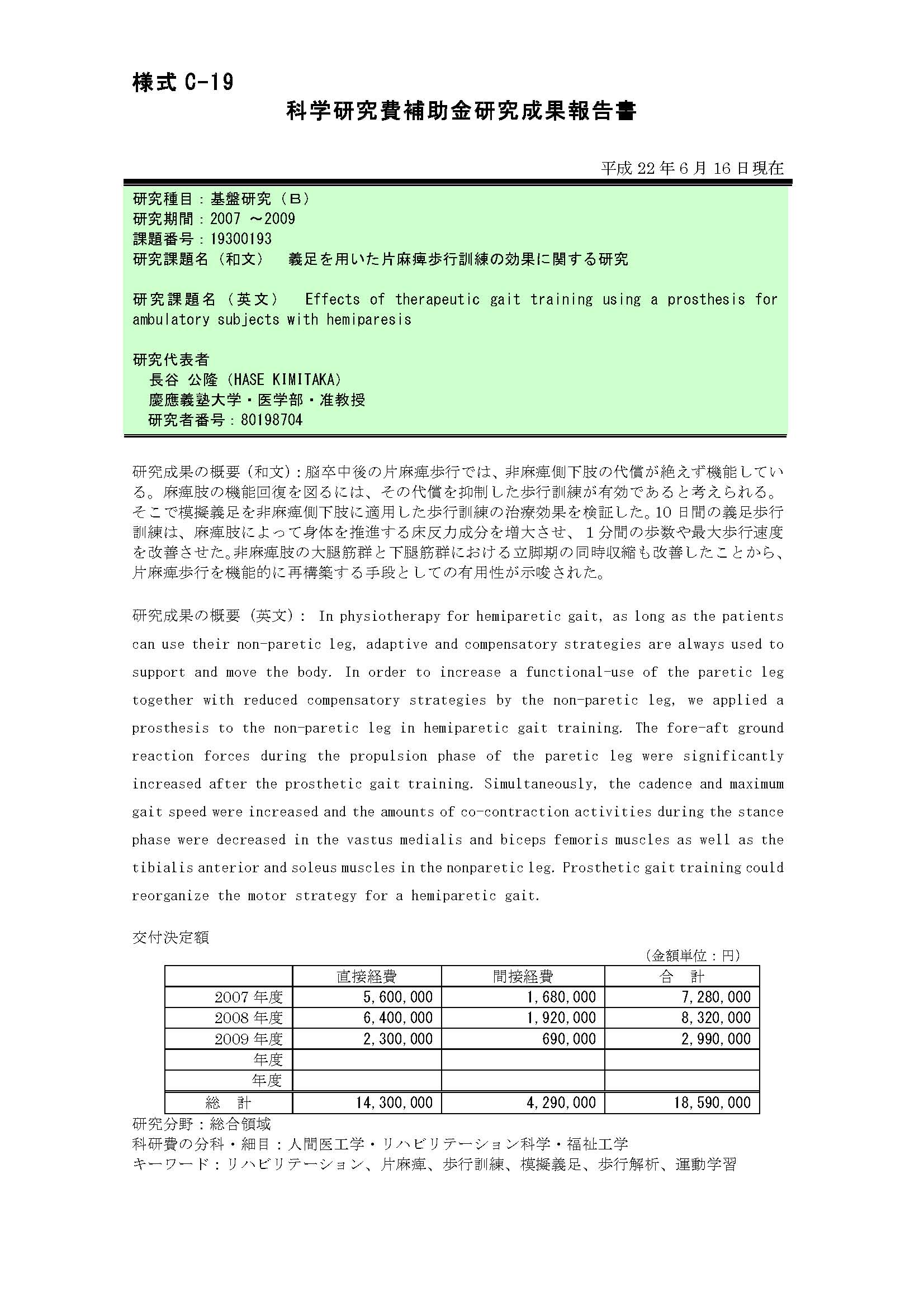 課題番号 : 19300193