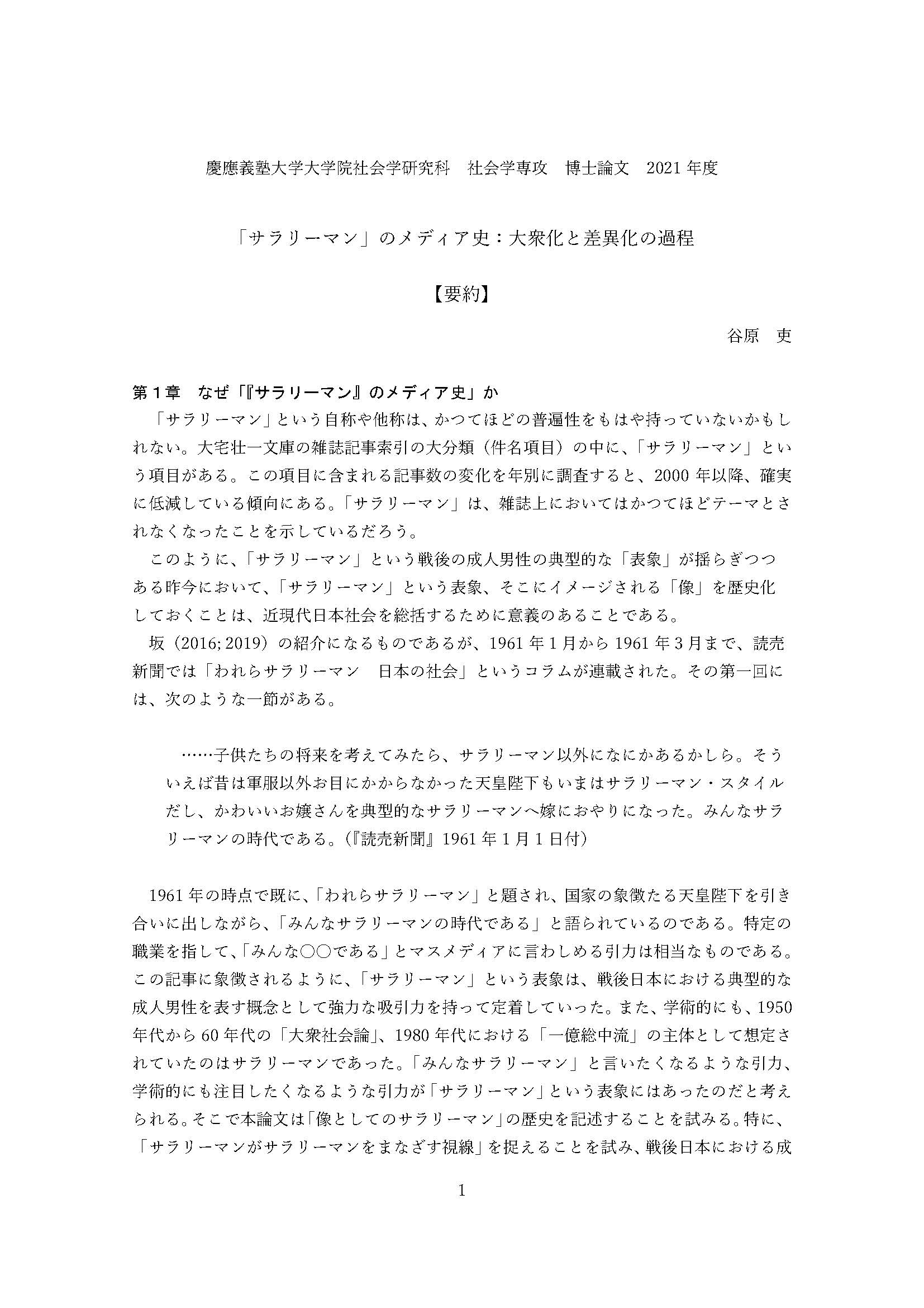 "Sararīman" no mediashi : taishūka to saika no katei (yōyaku)
