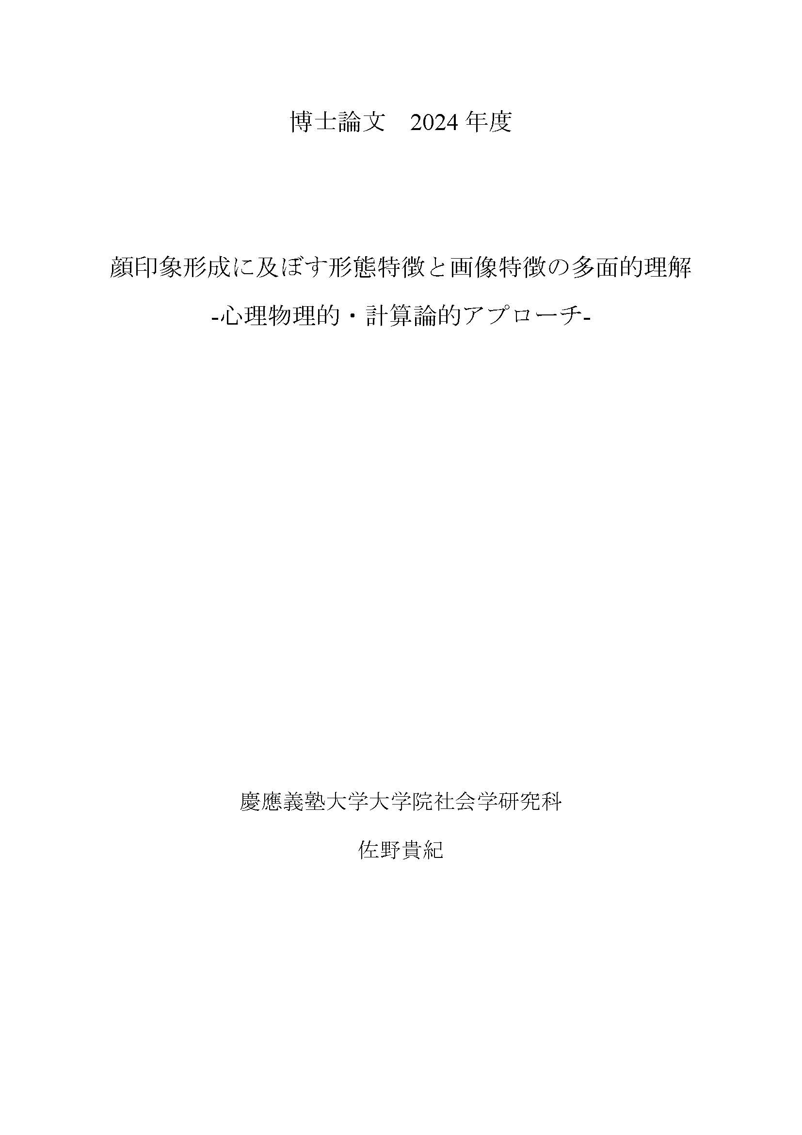 顔印象形成に及ぼす形態特徴と画像特徴の多面的理解 : 心理物理的・計算論的アプローチ (本文)