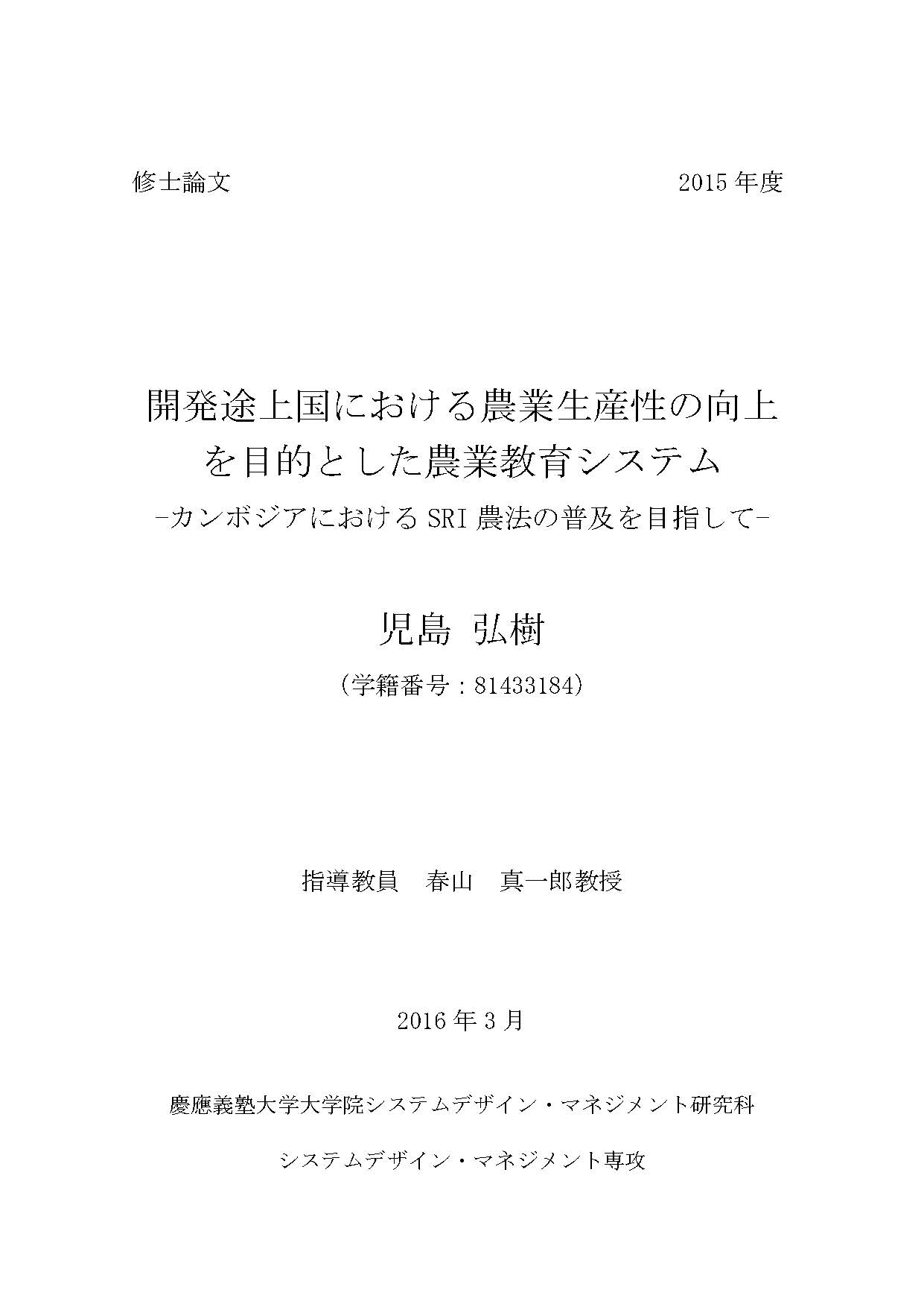 修士学位論文. 2015年度システムエンジニアリング学 第196号