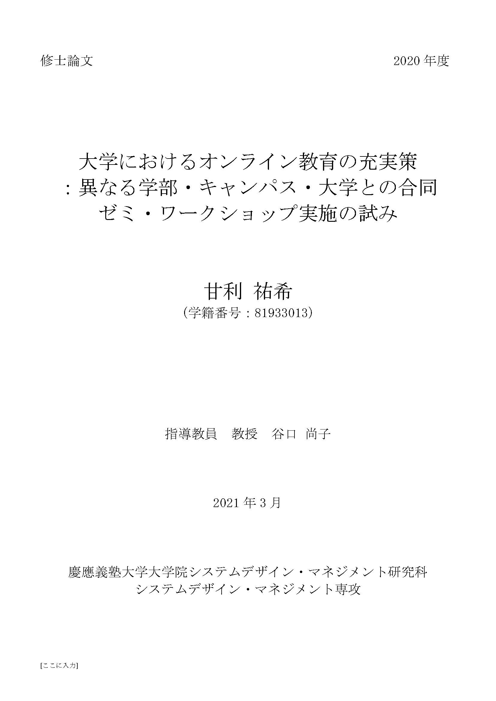 修士学位論文. 2020年度システムデザイン・マネジメント学 第407号