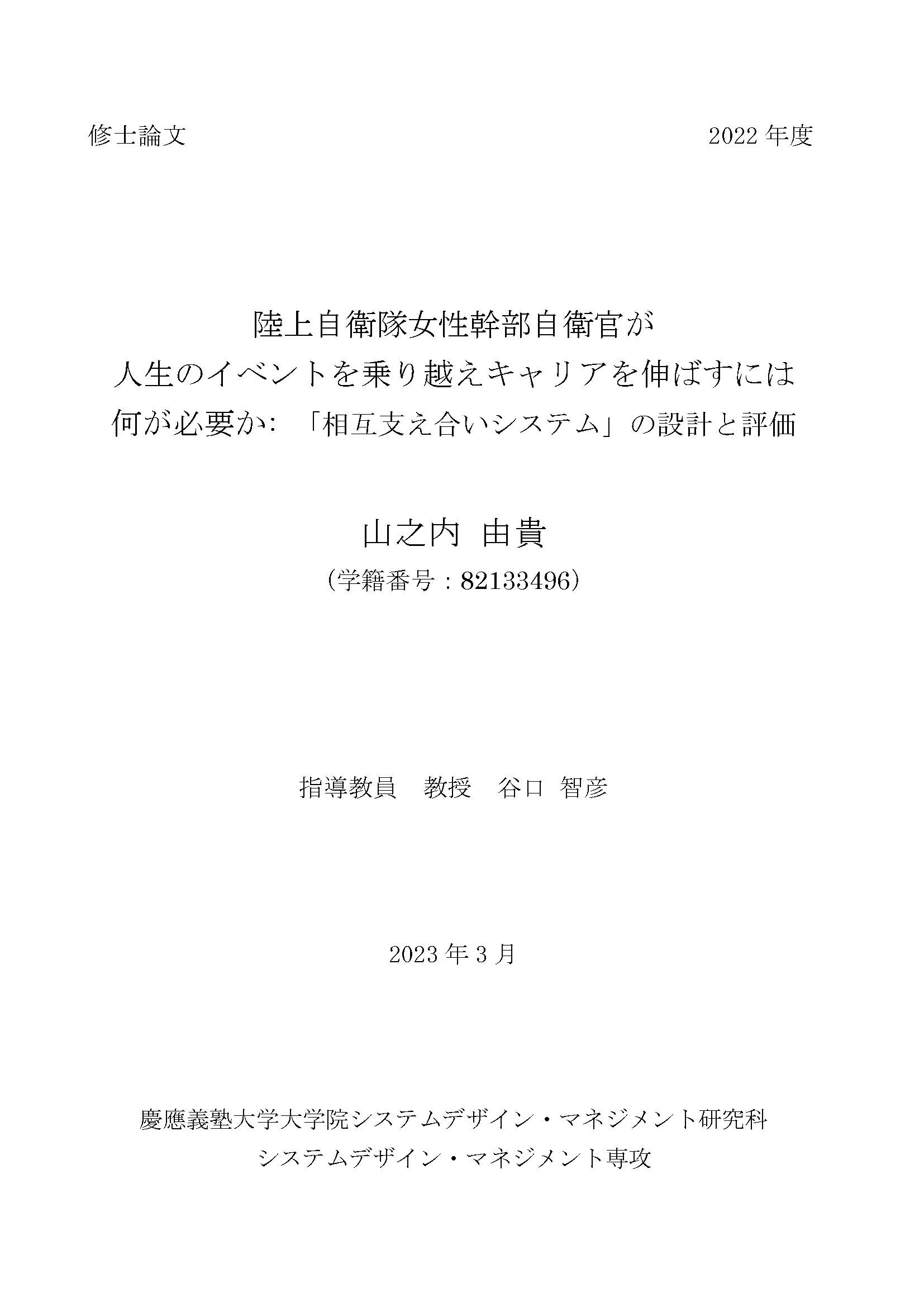 陸上自衛隊女性幹部自衛官が人生のイベントを乗り越えキャリアを伸ばすには何が必要か : 「相互支え合いシステム」の設計と評価