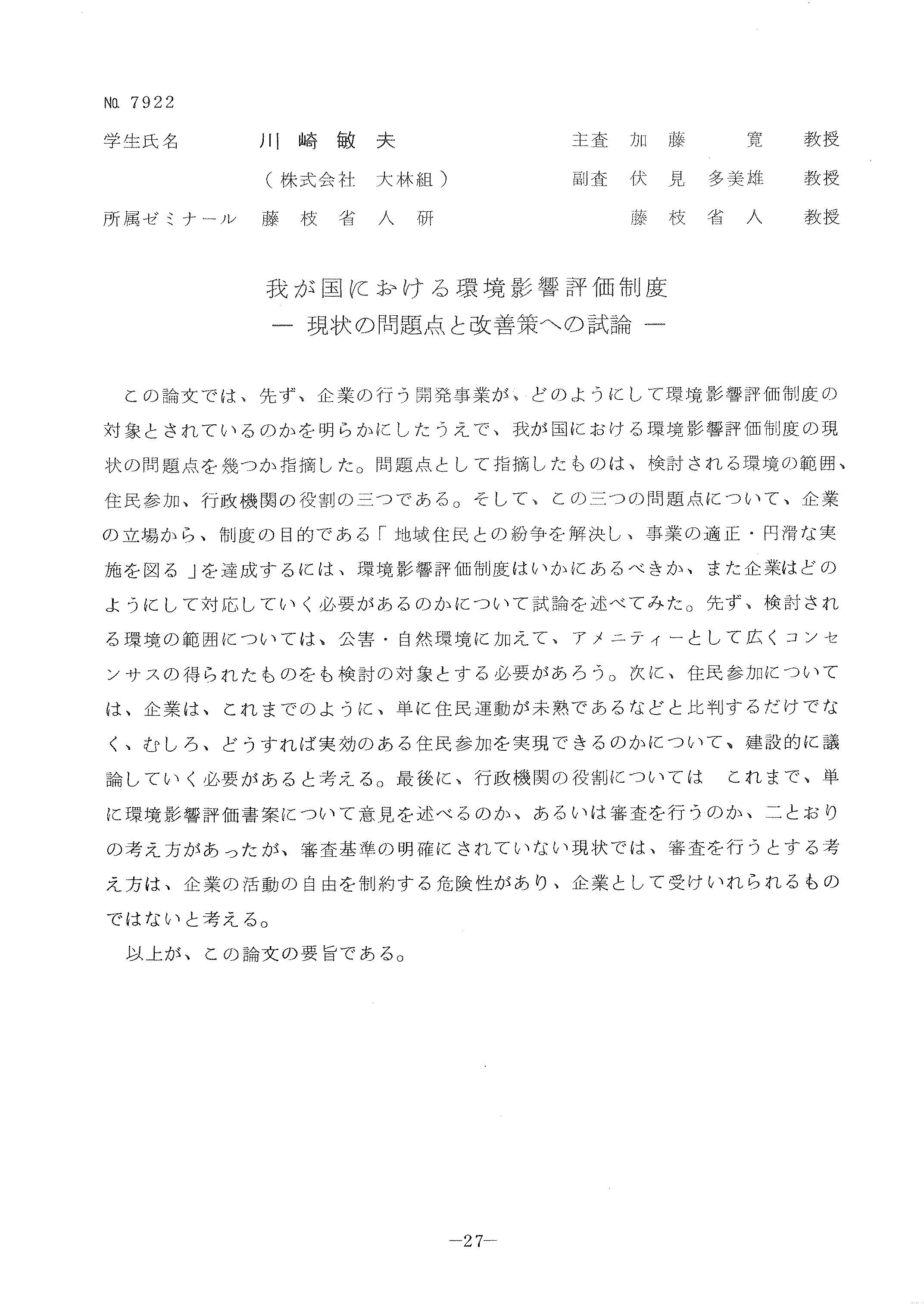 我が国における環境影響評価制度-現状の問題点と改善策への試論