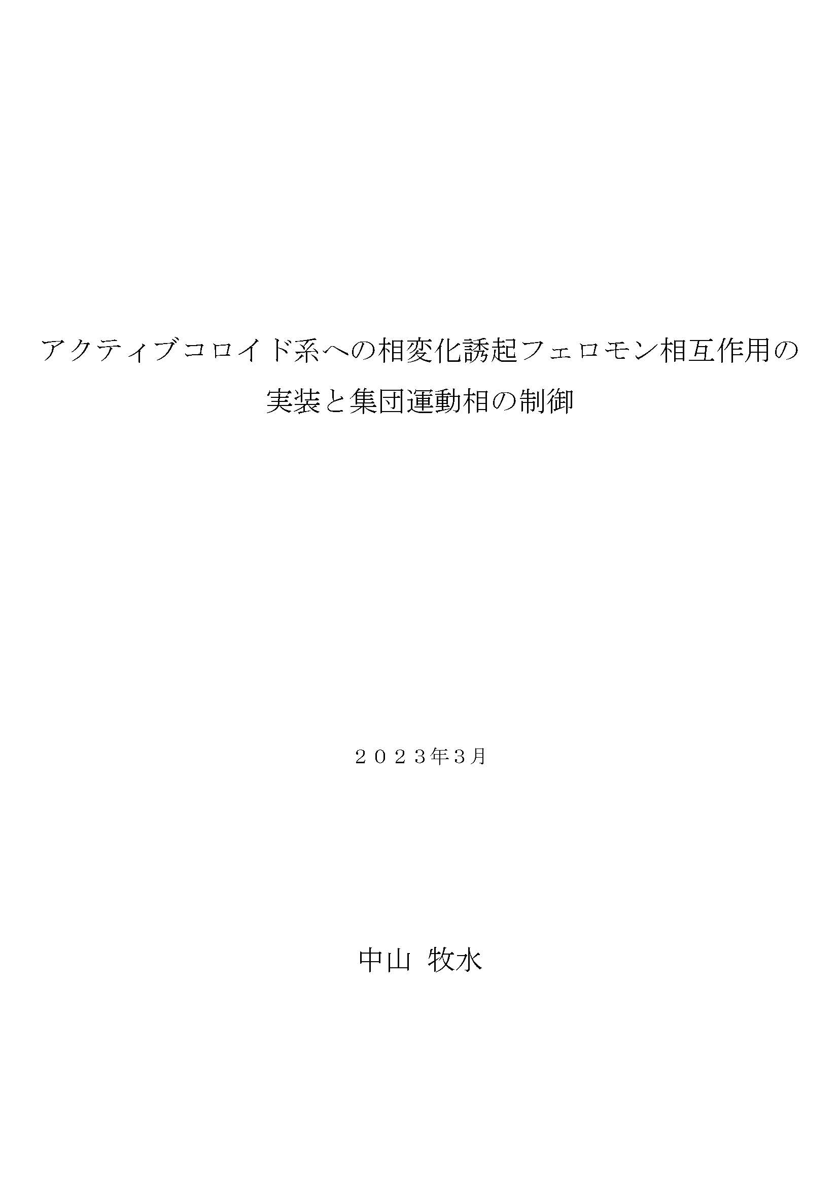 アクティブ コロイドケイ エノ ソウヘンカ ユウキ フェロモン ソウゴ サヨウ ノ ジッソウ ト シュウダン ウンドウソウ ノ セイギョ (ホンブン)